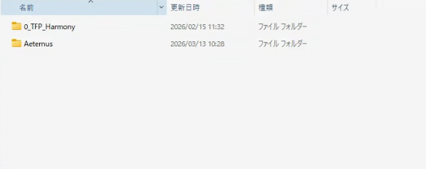 コピーしたフォルダはわかりやすいように『Aeternus』などとリネームしておくと良いでしょう。