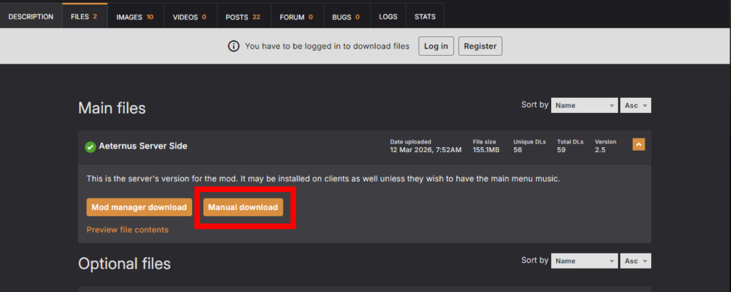 MODをダウンロードします。下記サイトからMODをダウンロードできます。