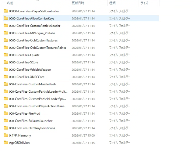 ダウンロードして展開した日本語化MODフォルダの中に『AgeOfOblivion』と『zzzz_AgeofOblivion_JPLocalization』の2つのフォルダがあります。