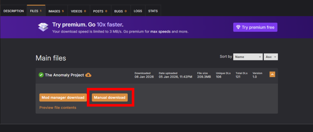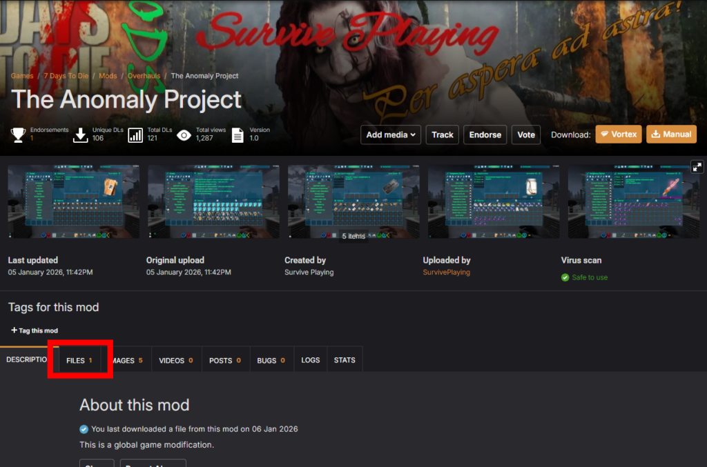 まずはMOD自体をダウンロード、インストールしてください。The Anomaly Projectは7D2D MOD LAUNCHERから導入することが出来ません。手動による導入となります。