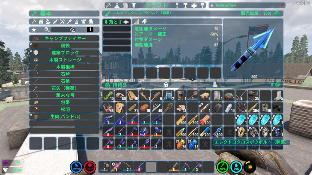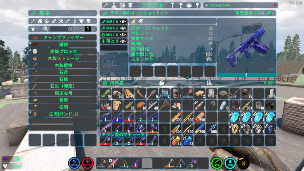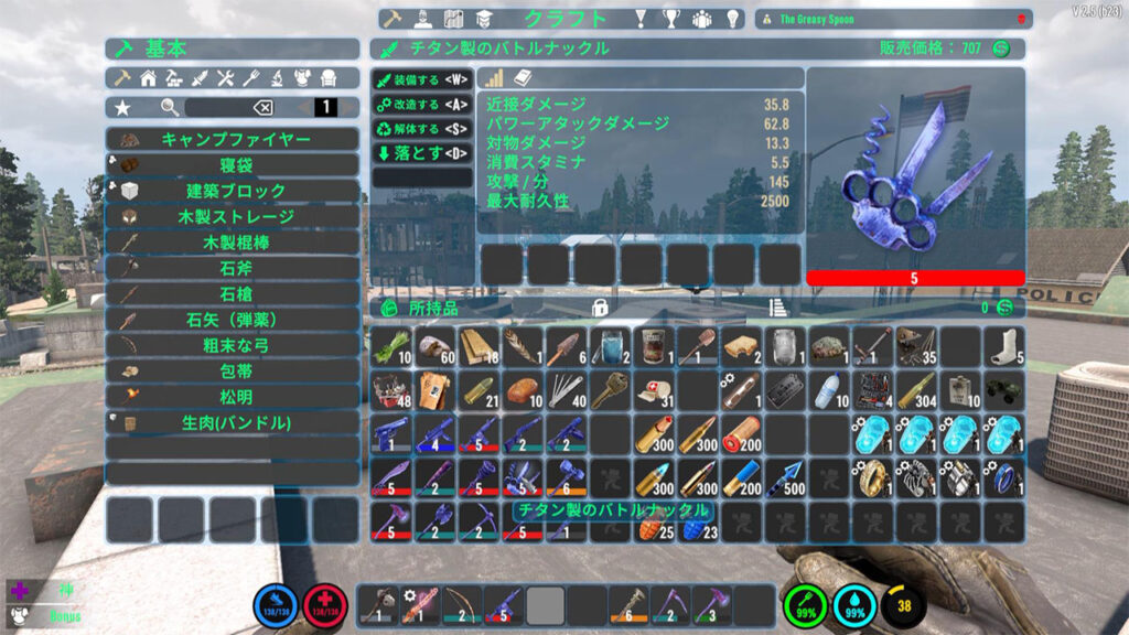 上位の装備品として、チタンのツールやチタンの武器が多く実装されています。