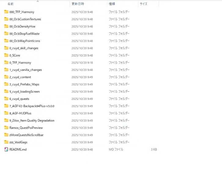 コピーした7Days To Dieの場所にMODをインストールしてバニラ版の7Days To Dieと分けておきます。