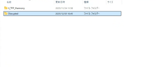 コピーしたフォルダはわかりやすいように『Disrupted』などとリネームしておくと良いでしょう。