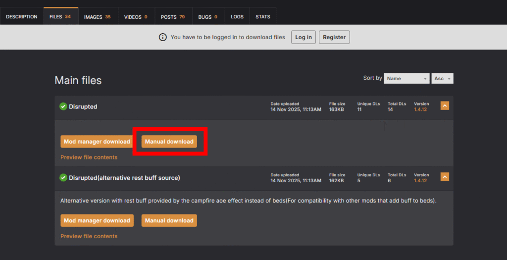 MODをダウンロードします。下記サイトからMODをダウンロードできます。