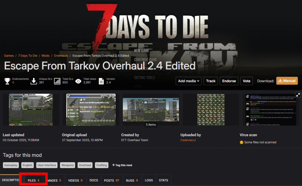 まずはMOD自体をダウンロード、インストールしてください。Escape From Tarkov Overhaul Editedは7D2D MOD LAUNCHERから導入することが出来ません。手動による導入となります。